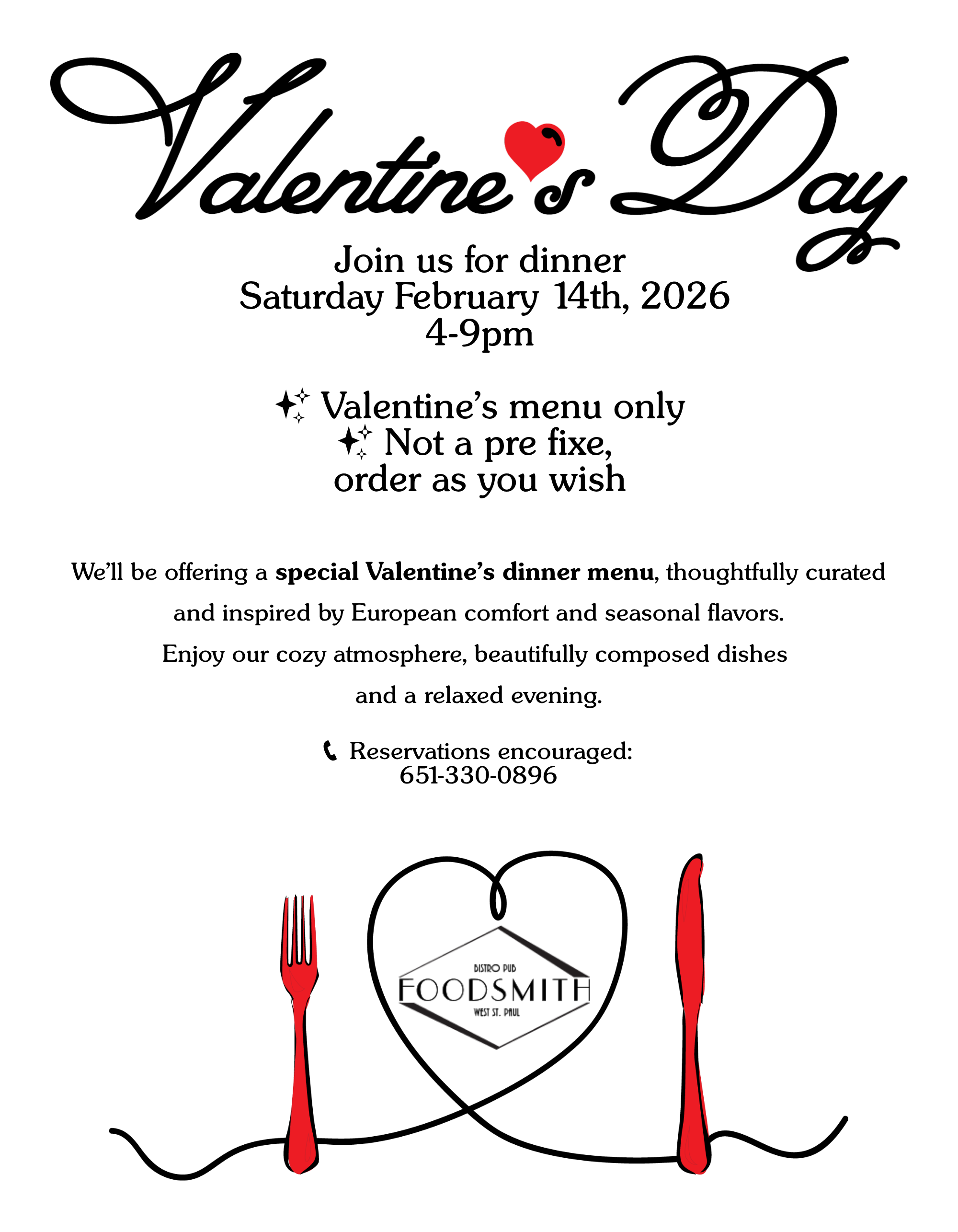 Please note that our Valentine’s Day Menu is only available for Dine-In; not available for Takeout